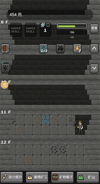 1、购买动力提升能助力矿业发展壮大,点击画面即可提升开采分身术;