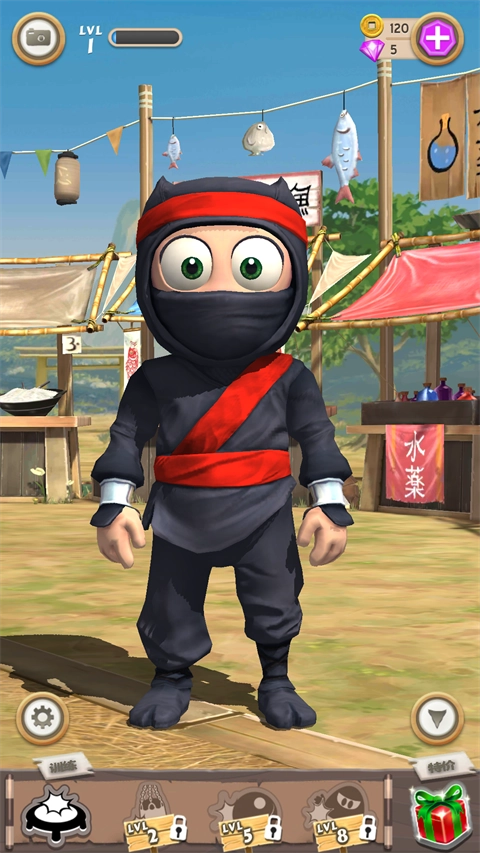 4、当笨拙的忍者达到特定等级后,就能更换不同颜色的服装,不同颜色对应着不同级别,这是为忍者准备的奖励。
