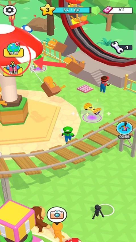 2、注意收集资源,同时可查看【地图】和【皮肤】功能丰富游戏体验。