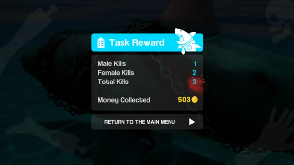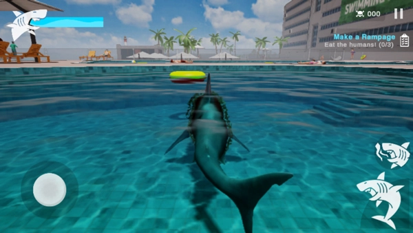 5、玩家需操纵鲨鱼撕咬游戏内的人类;