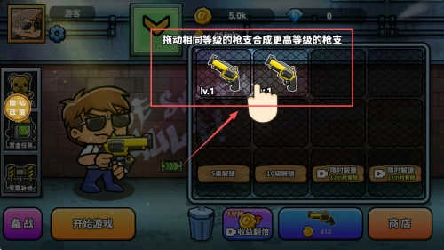 怎么给枪支升级呢?进入枪支界面后,把等级相同的枪支拖动到一起,就能合成出等级更高的枪支啦。
