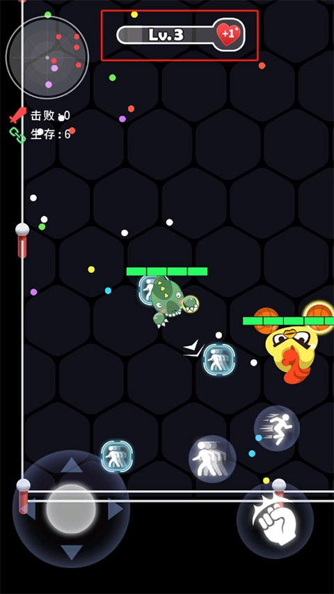 这款创新的生存竞技游戏有着独特的玩法机制。玩家采用上帝视角进行操作,有效避免了3D眩晕带来的不适。在有限的活动区域内,你需要操控角色探索环境,收集散落的各类物资来强化自身属性。遭遇对手时,灵活运用移动技巧与战术走位将其击败,即可夺取对方的装备道具;若陷入劣势,还能借助加速功能快速撤离战场。需要特别注意的是,长时间停留在同一位置会面临区域限制机制的威胁,务必保持移动以确保安全。