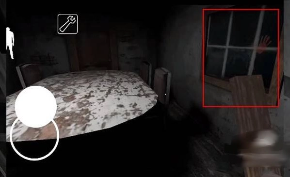 玩家搜寻到那个操控装置后,从印着血色掌印的窗户爬进了房屋后方的庭院。