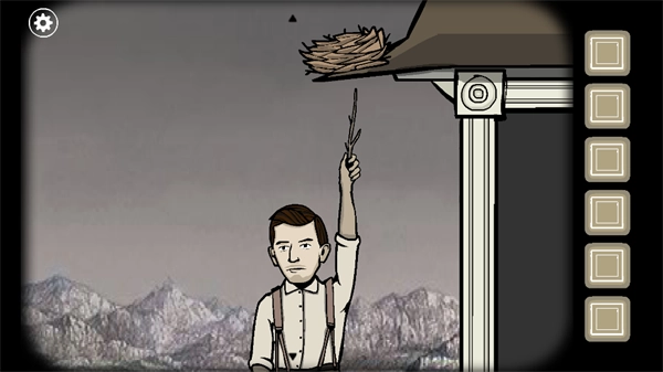 再次点击男士,把枝干递给他,接着反复点击男士,让他把房檐上的鸟窝捅下来。