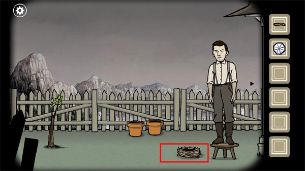 点击场景下方的花盆,先将花盆左边的虫子取走,接着点击左边的花盆获取一个道具。