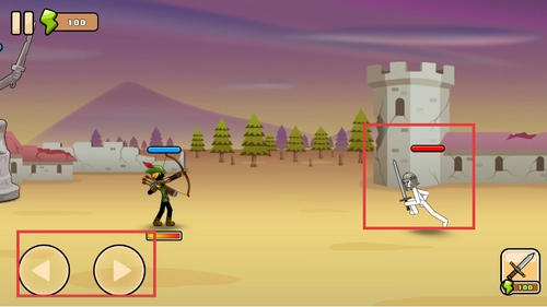 使用左侧的箭头按钮来操控弓箭手移动,当靠近敌人时,弓箭手会自动发起攻击,以此削减敌人的血量。