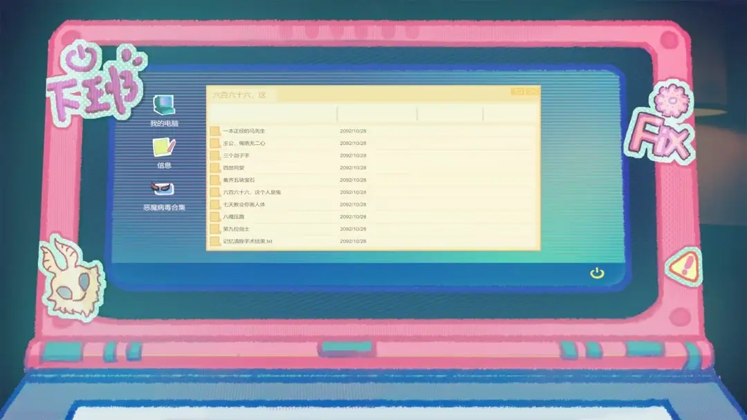 你是知名软件安全公司TSZ的首席软件安全工程师,你记不清自己是如何一步步走到这个位置的,只觉得自己像个不带感情的软件修改机器。这天,公司又派给你一项任务——处理一个被称为“恶魔病毒压缩包”的东西!这个压缩包里装着市面上所有在传播的病毒,数量多到像仙人列阵般密密麻麻。此刻,它就躺在你的桌面上,活像个张牙舞爪的恶魔,正挑衅着你的专业能力。你没有犹豫,直接解压了它……原来,这是一款融合了轻度剧情解密元素的卡牌策略游戏。