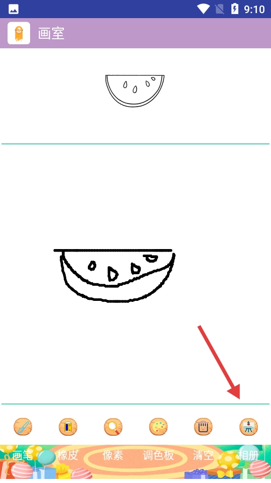 用画笔完成图案绘制后,点击底部的【相册】按钮,就能保存你的涂鸦作品啦。