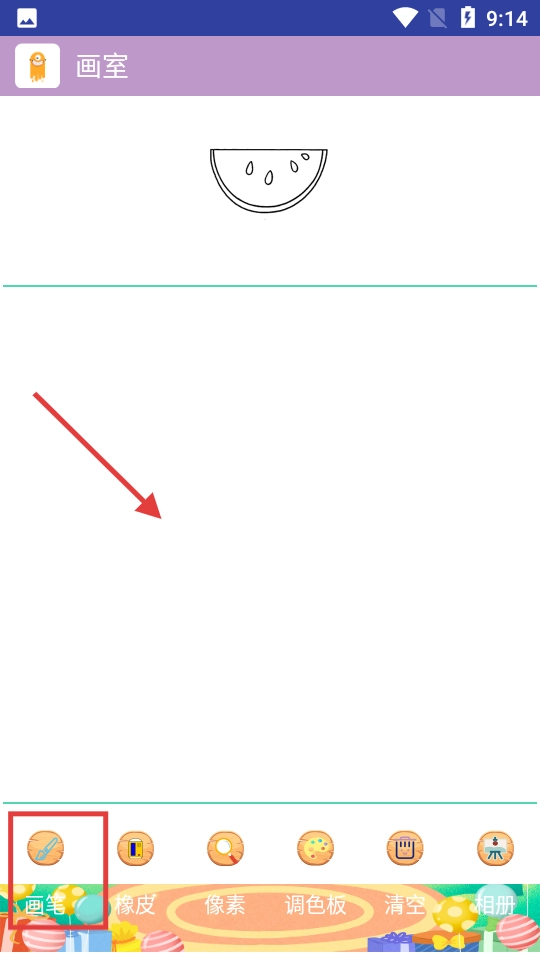 进入“画室”后,点击底部的【画笔】工具,就可以开始对选中的图案进行绘制了。