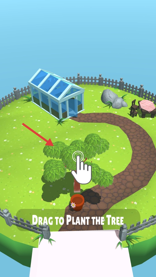 到达终点花园后,依据【DragtoPlanttheTree】的提示,拖动树苗完成种植,以此装饰花园。
