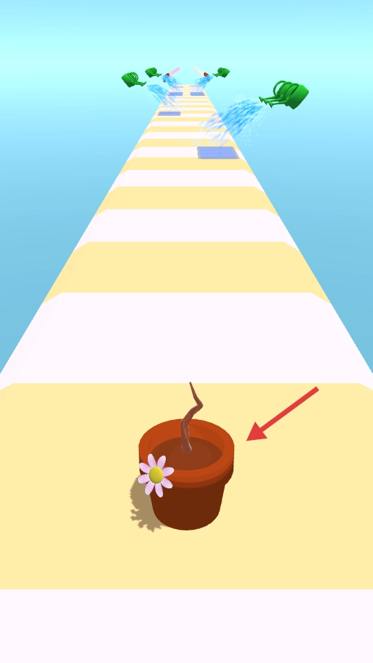游戏开始,操控带花的盆栽树苗在跑道上前进。