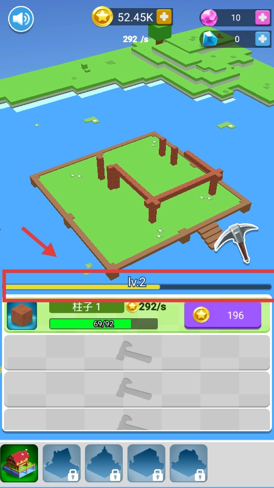 在建造的过程中,要留意等级进度条,一旦进度条填满,游戏等级就会随之提升。