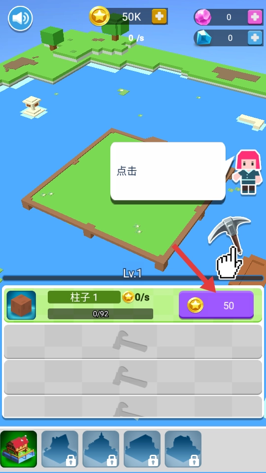 根据提示点击紫色按钮,花费50金币,开始建造。