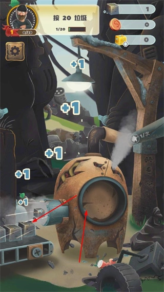 操作机器进行垃圾处理,每次处理都会产生垃圾计数,例如完成20垃圾的任务后,垃圾数量会逐步积累。