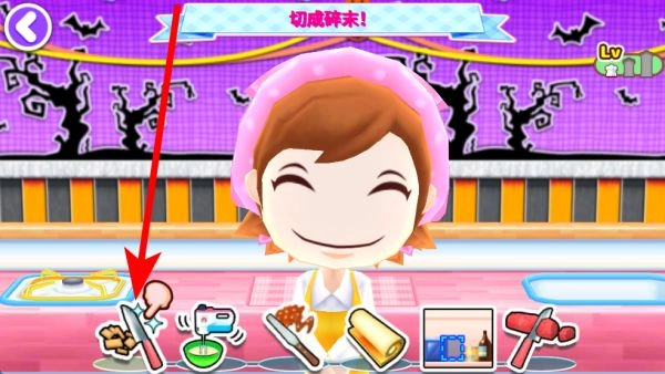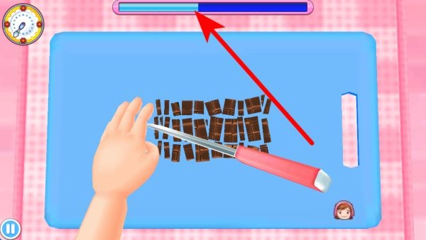 接着依据食谱的步骤来切割食材,注意观察上方的进度条,合理掌控时间,保证美食能够成功制作好。