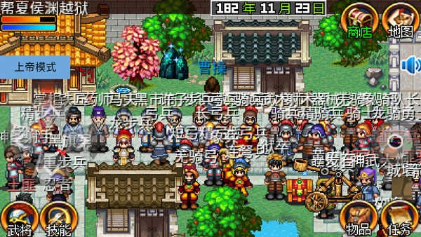 超大世界地图,14个城市场景,40个三国名将,30种技能,20多个兵种。