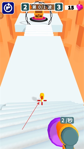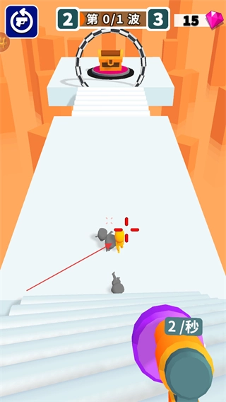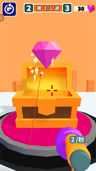 进入游戏关卡后,屏幕上方会显示当前的波次信息,比如“第0/1波”这样的提示,你需要操控武器去射击前方出现的敌人。