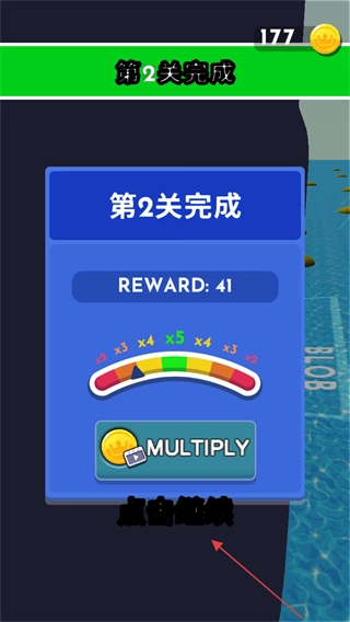 关卡完成后,查看所获得的奖励(例如REWARD41),点击界面上的对应位置即可进入下一关。