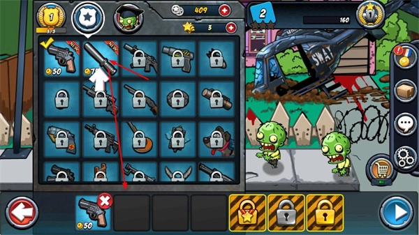 在武器选择界面,你可以消耗金币来解锁并挑选各式各样的武器,以此增强战斗能力。