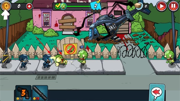 士兵会自动对靠近的僵尸发起攻击,借助武器的攻击效果来消灭僵尸、守护家园,在此过程中还需留意僵尸的数量以及它们的进攻节奏。