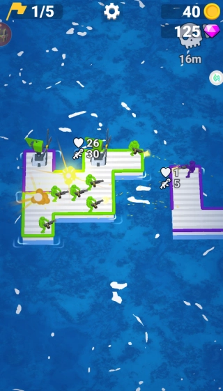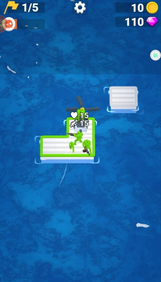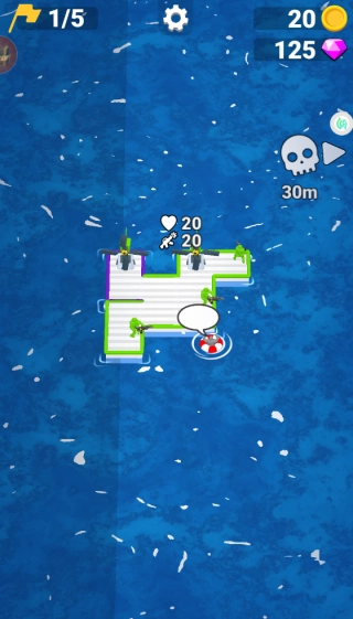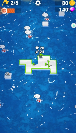 操控木筏在大海中航行,收集海面上漂浮的金币与钻石,用这些资源来搭建射击塔,以此攻击敌方的敌人。