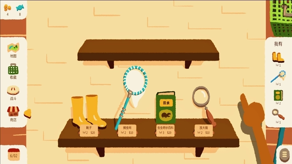 2、装备和捕捉存在深度关联,不同工具适用于不同环境中的昆虫,对装备进行升级能够提升稀有虫子的捕捉成功率。