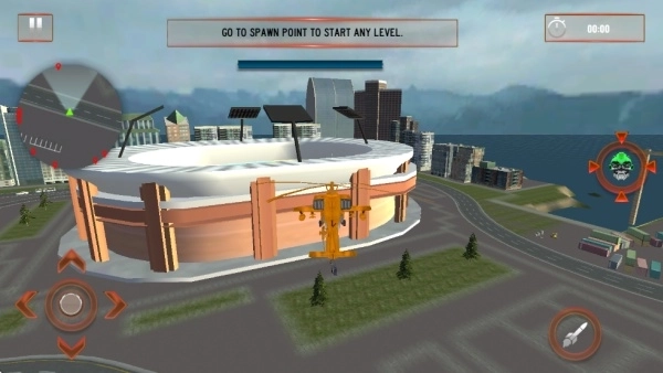 2、左下方摇杆可以控制方向,右边控制攻及和起飞。
