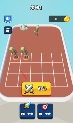 点击红框战斗按钮,开始关卡1僵尸对战模式。