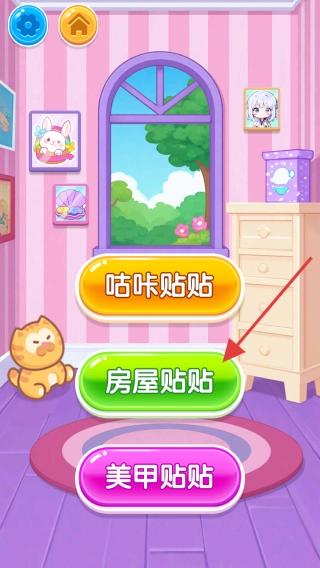 1、在游戏主界面找到“房屋贴贴”选项并点击,即可进入房屋装饰界面,开启你的房屋装饰冒险,感受趣味十足的房屋装饰玩法。