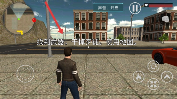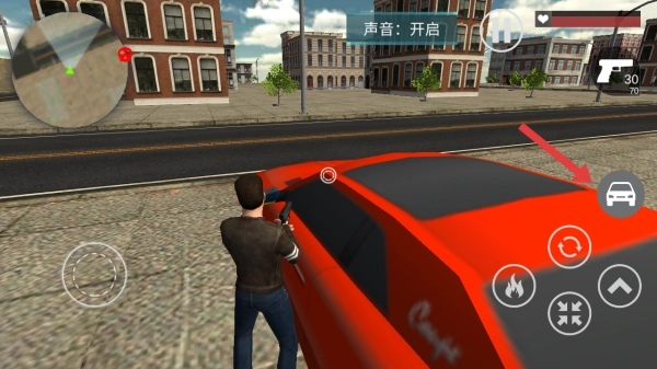 靠近车辆点击右侧汽车的图标,进入红色车辆,借助车辆提升移动速度,辅助我们快速找到歹徒。