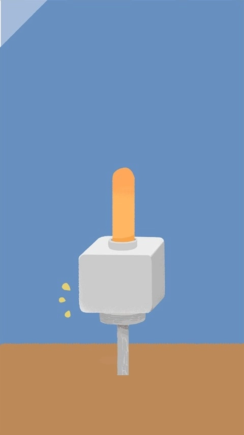 4、第三关要把锤子搁在钉子上,接着松开手反复敲打,直到钉子彻底钉进去。