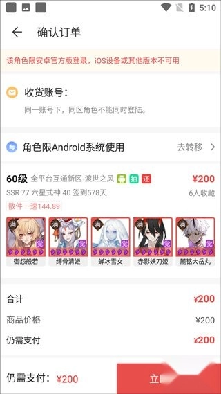 选定目标账号后,点击界面右下角的【立即购买】按钮,即可进入交易流程。