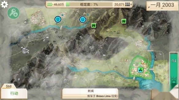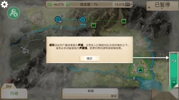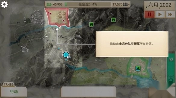 首要战略是将叛军势力压制至地图边缘区域,同时集中资源发展其他地区,优先将区域稳定度提升至100%。随后建议优先升级警务系统(盾牌标识项)至最高等级。