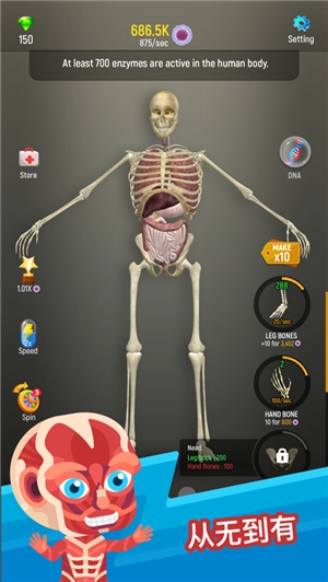 2、带你领略人体的各种组织,从骨架和细胞,神经,肌肉和皮肤,了解人类的组成;