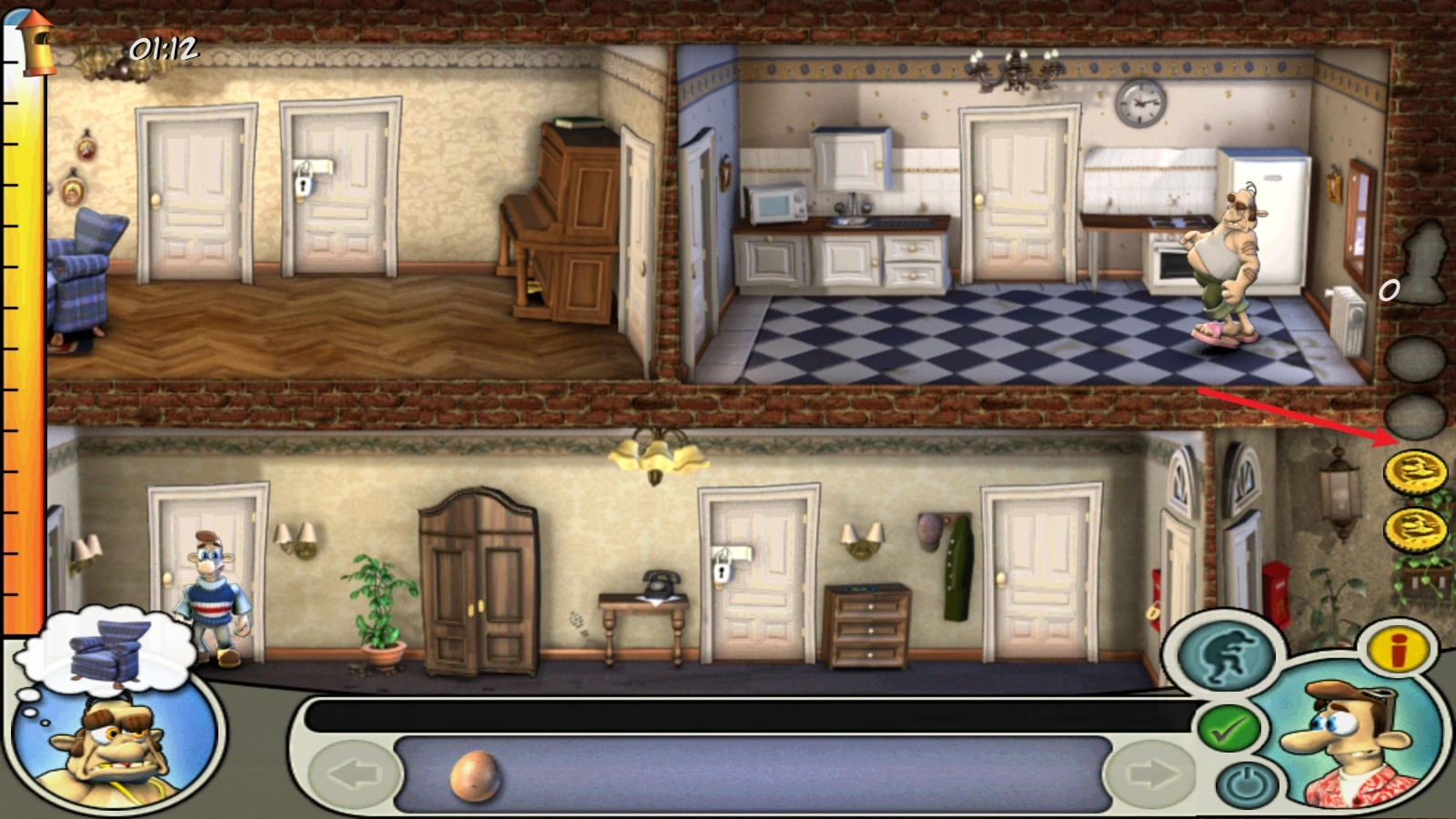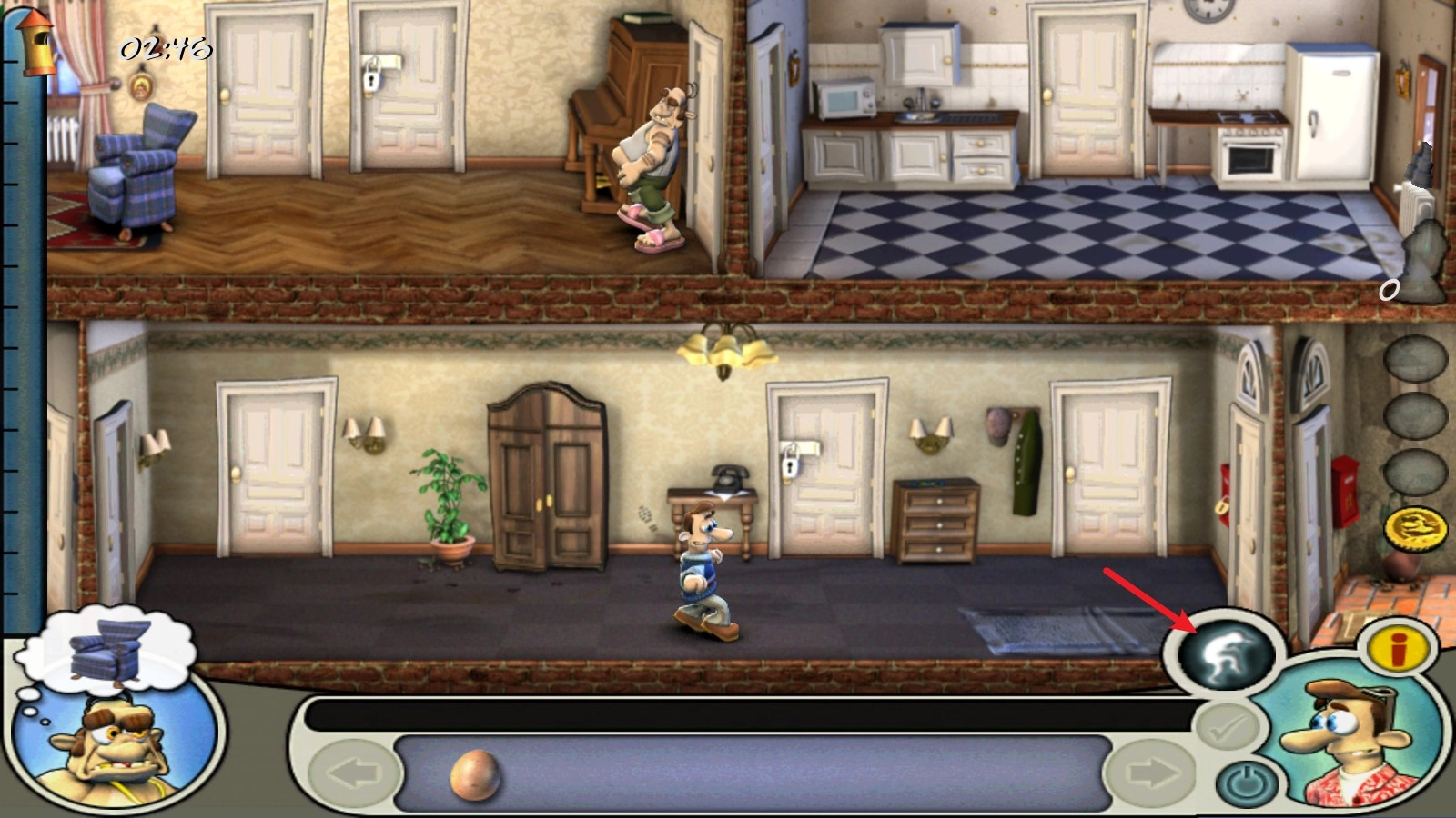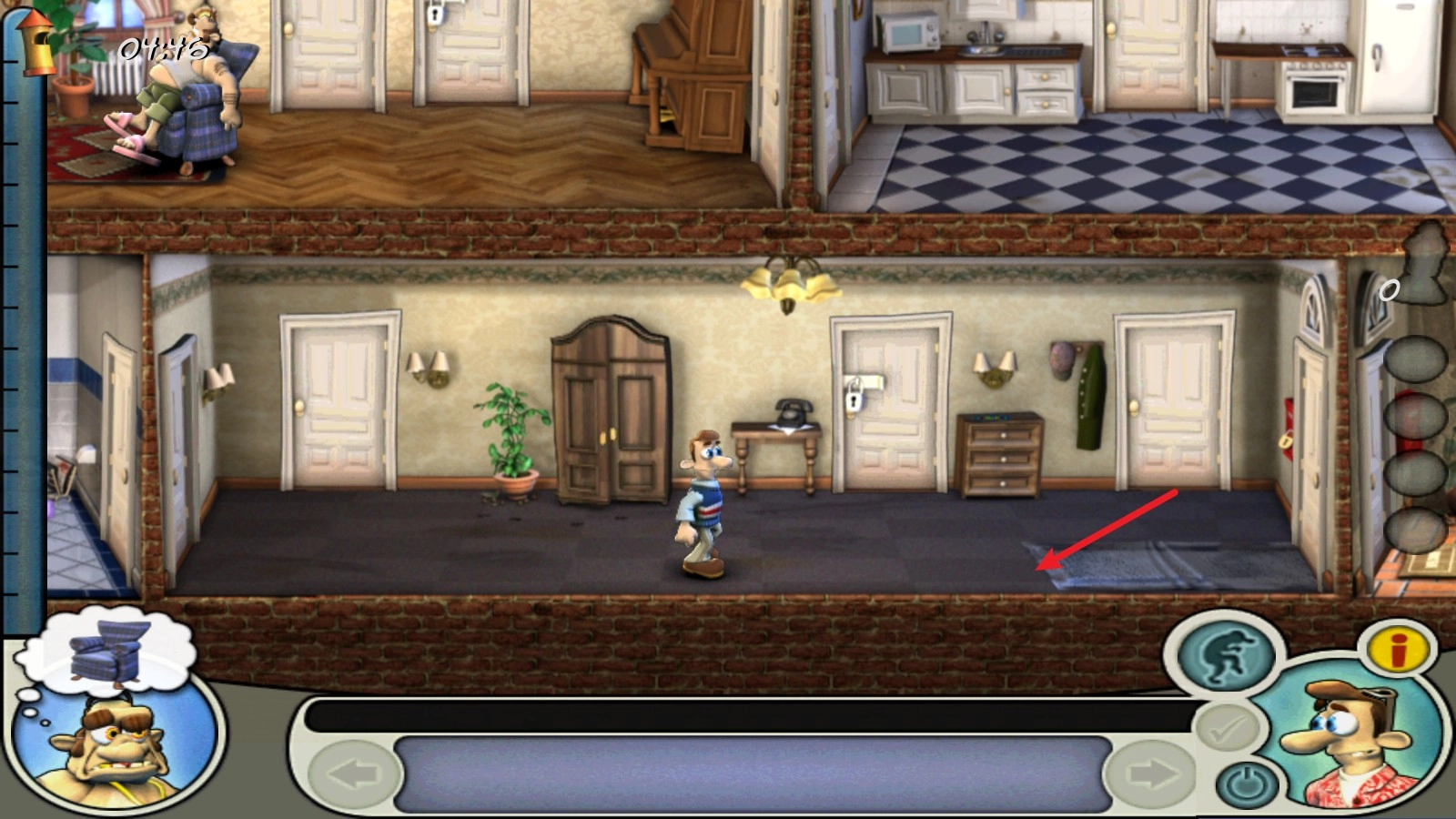 4、找到道具后我们需要放置在合适的位置进行整蛊,一定要趁着邻居离开某个房间的时候实施。