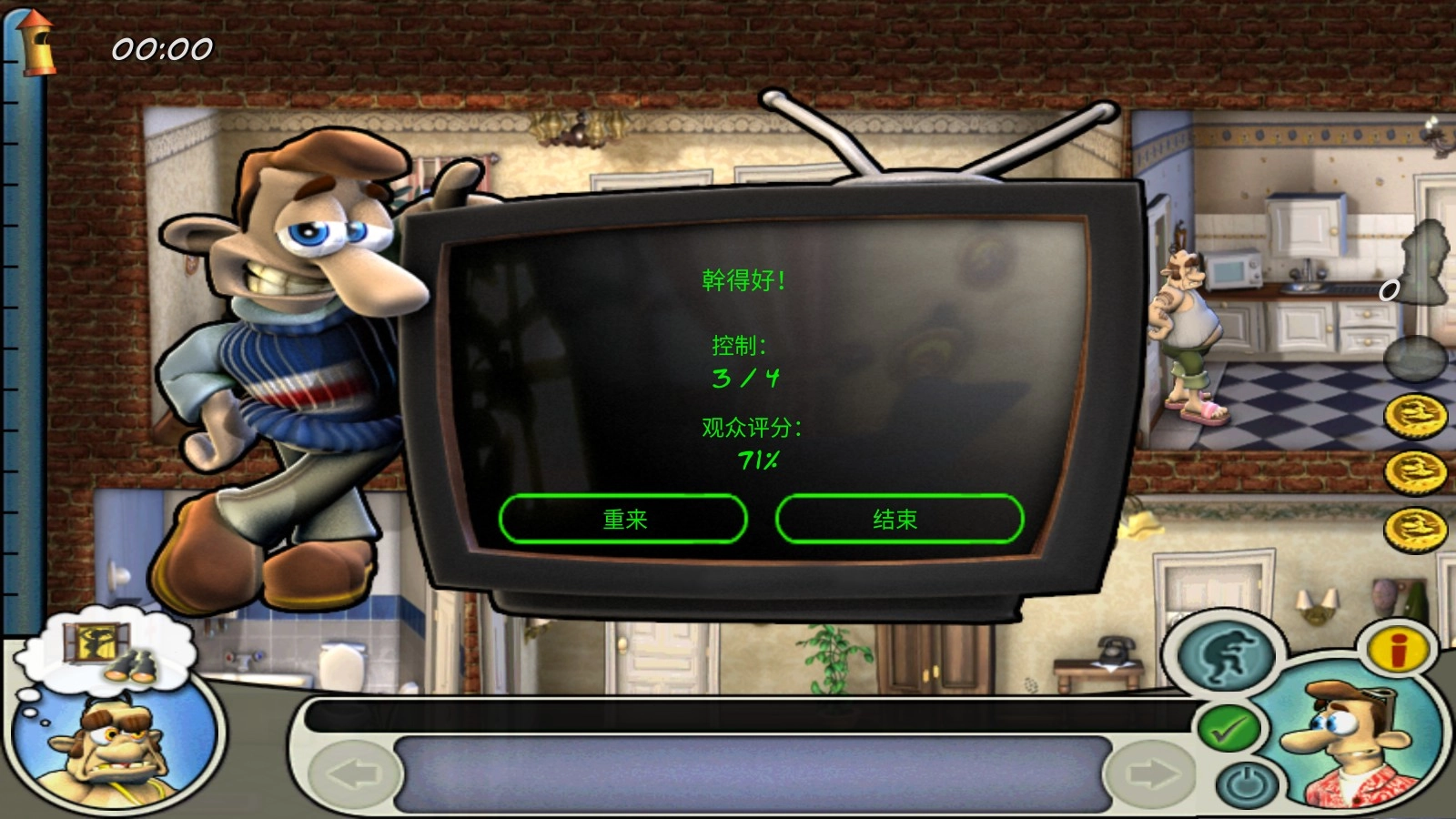 3、目标导向的关卡设计,每关设置若干整蛊任务,需全部完成方可达成完美通关条件。
