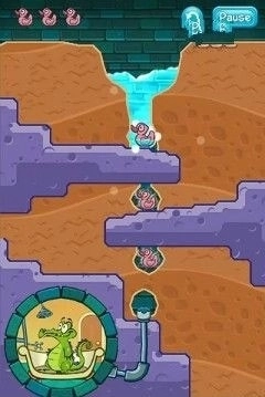 在大部分关卡里,玩家垂直向下滑动屏幕,持续滑动就能看到下方有一只小鳄鱼在来回游动。