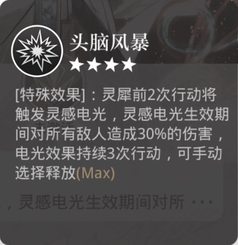 (2)头脑风暴:群体伤害效果,持续3个回合,必定触发,一局游戏内最多触发2次。