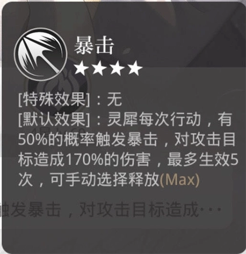 (3)暴击:单次按百分比计算的暴击效果,以概率形式触发,每局游戏中最多可触发5次。