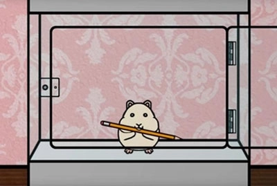 4、一直到最后的场景,把制作组图标放到老鼠洞伸出来的手上,就会看到大大小小的制作组图标被不停地扔出来,游戏随之结束。