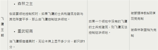 2、飞鹰王朝:当场上有他三个或更多鹰巢时,飞鹰每回合会获得2+VP。他们会逐渐得分,如果让飞鹰单独发育,飞鹰就会赢。