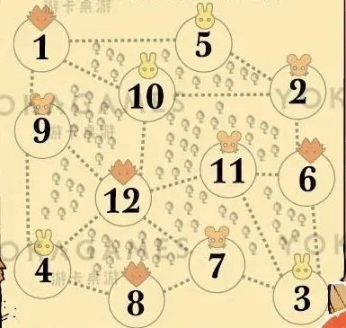 右上角②号位置是常见的猫咪开局,原因的两个空槽对贵族诱惑较大,但外围的⑤⑩⑥号位置不相连,四面受敌,处境险恶。