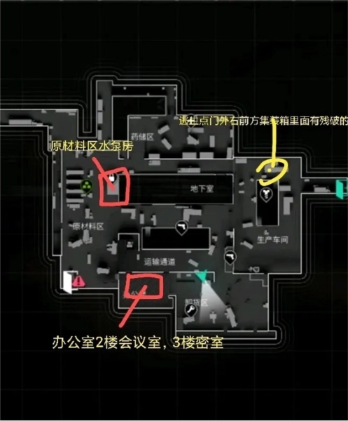 各位小伙伴们在游戏前期,建议多囤积一些铁材料,因为它能卖出不错的价格。等开启寄售功能后,每件铁就能卖到八千,所以前期多攒点铁准没错。另外,地图上也能找到铁的刷新点,像巴夫工厂就有一个,具体位置如下图所示: