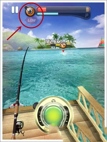 从“low”的位置按住卷线按钮后就不能松开,这样才能打出高连击。由于是从底部开始,力量槽到满还有很长距离,能给玩家足够空间积累高连击数。
