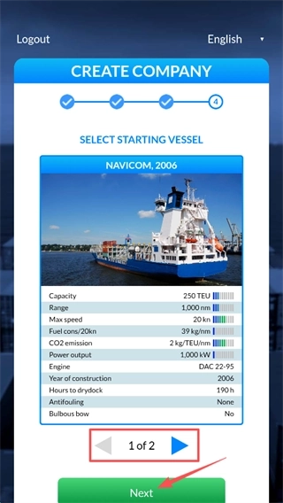 3、拥有两艘货船,玩家可自主挑选其中一艘进行航运,接着点击屏幕下方的“Nex”。