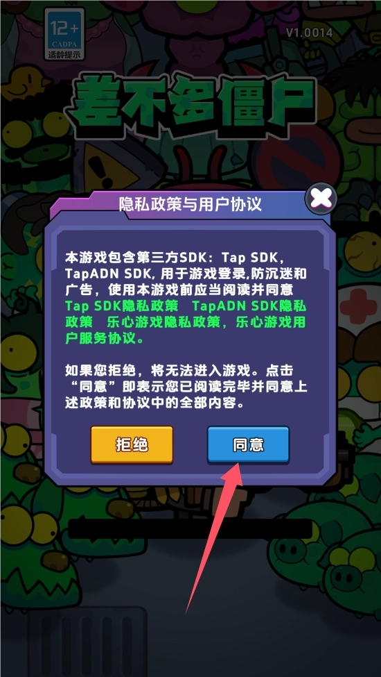 1、在本站下游戏,打开游戏,点击同意。