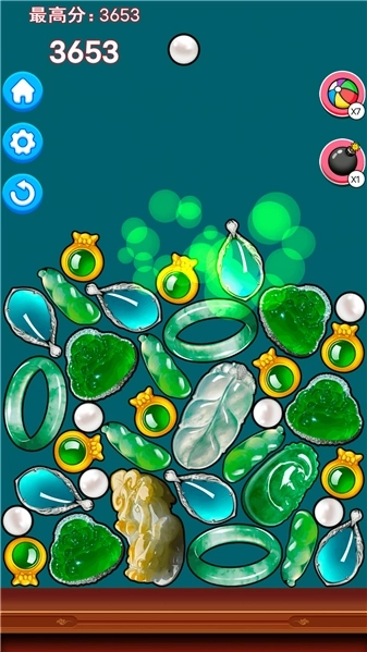 2、玩家是滑动手指射出物件,把两个相同等级的翡翠合成为一个更高等级的翡翠。