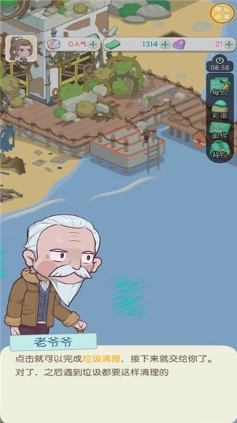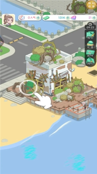 从岛主开始,一款迷人的放置模拟经营游戏,让玩家沉浸在建设和经营一个美丽岛屿的乐趣中。玩家将继承神秘姨婆的遗产,扮演这个荒岛的新主人,并通过自己的努力将这片未开垦的土地变成一个繁荣的天堂。有些年头没见过这么干净的海滩了!但要重建海岛,还得修建房子,重新开店才能让岛活起来。