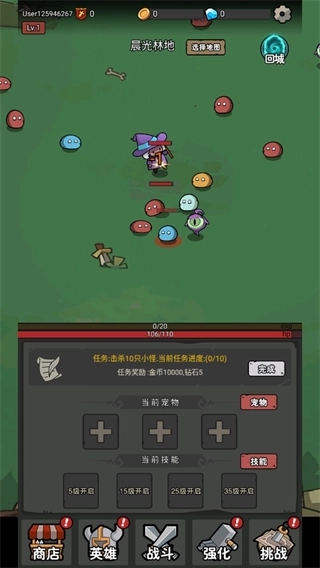 3、击败怪物后会掉落各种装备,点击英雄界面即可穿戴这些装备。
