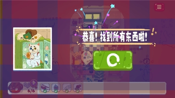 6、最后,找到所有物品即可闯关成功,开始下一关。